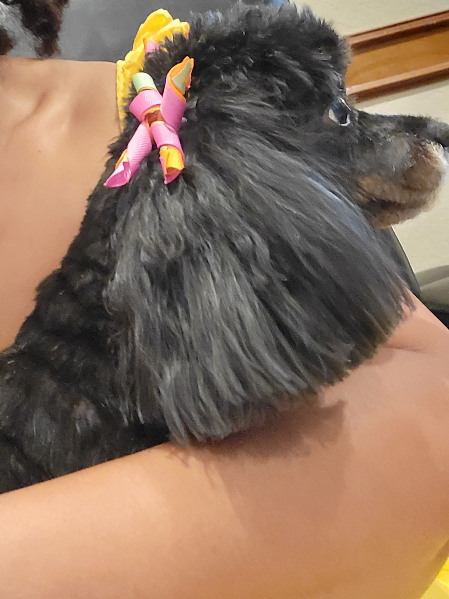 Today, I want to share my appreciation for my beloved dog, Sarah Jean aka “pumpkin.” She was the most affectionate dog, always enjoying cuddling and staying close to me. I received her as a gift from my son in 2016. While at a friend’s wedding out of the country, my son surprised me by saying he had got me a dog. At first, I thought he was joking. However, when I arrived home and saw a pink crate, I knew a dog was waiting for me. Even though she looked a bit scruffy, she was adorable. I told him, “Let’s see how this goes,” as it was my first time having a pet in the house. Nearly eight years later, she was still here until she took her last breath at home, lying in her bed next to our bed on April 8, 2024, the morning of the total eclipse. It has taken me this long to announce this news, but those who know me and have been with me are aware of this loss.